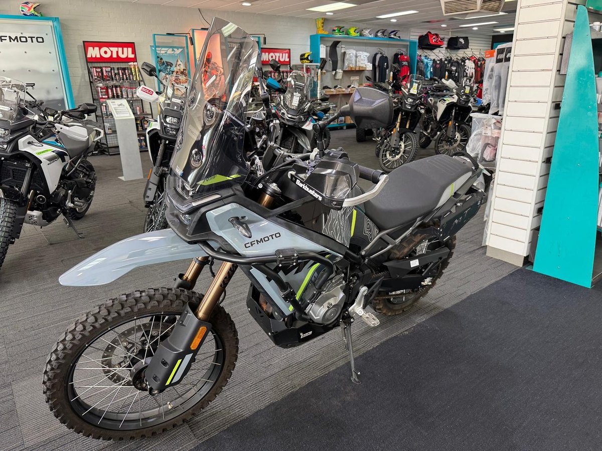 Learner Approved MotorCycle. 2025 CFMOTO 450MT with 15334kms. One owner purchased and serviced through us in great condition with a bunch of extras including SW Motech crash protection, tall screen, high front fender, Barkbusters and more.