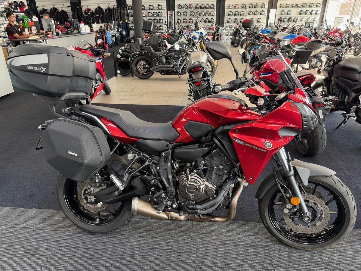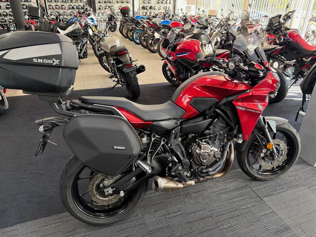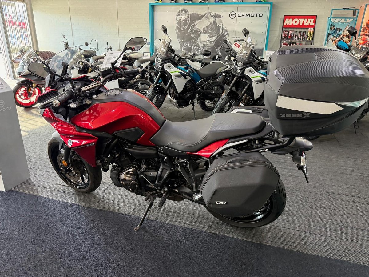 Learner Approved MotorCycle. 2017 Yamaha MT07TR LAMS with 31684kms. LAMS legal commuter / tourer in good condition with Shad top box , genuine soft panniers.